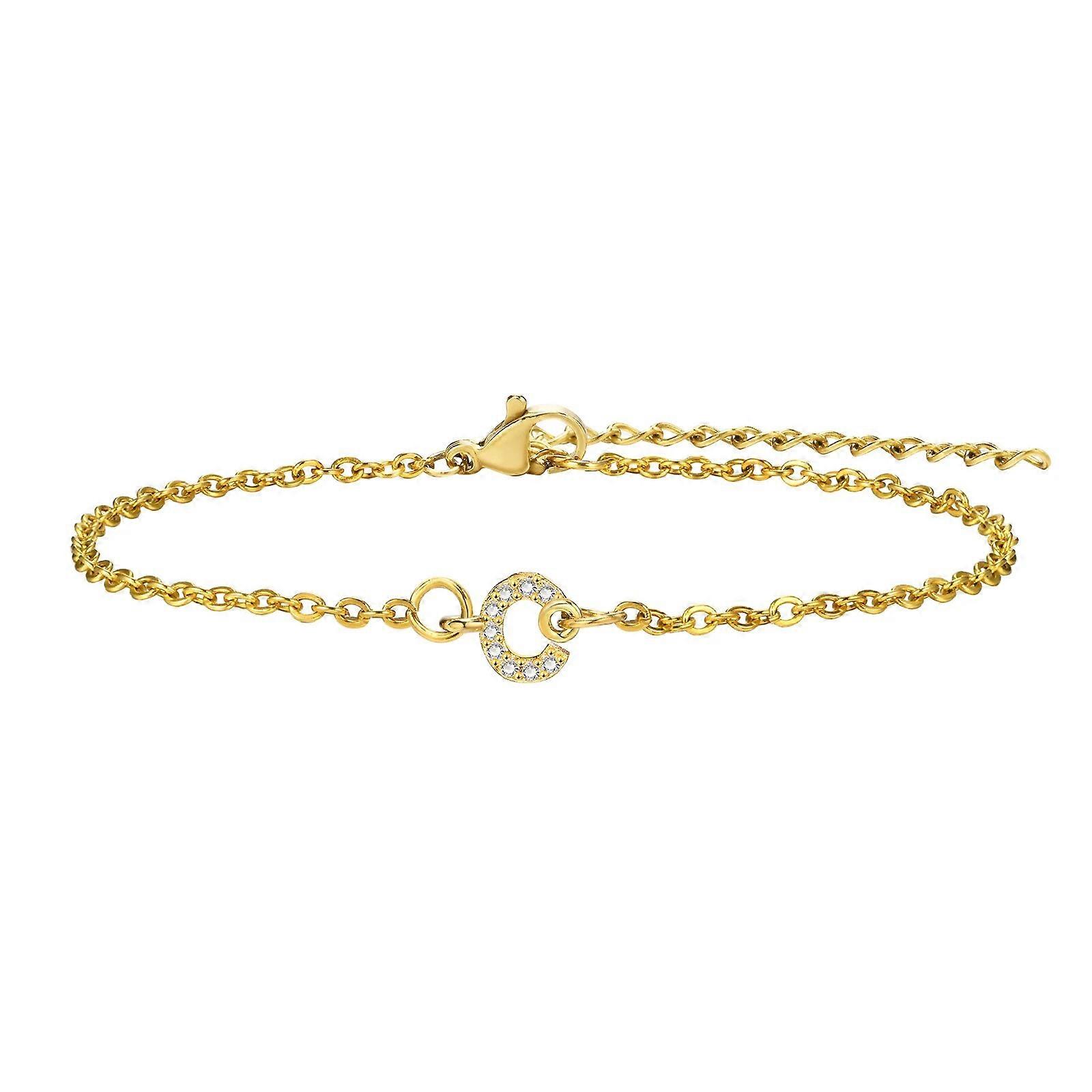 Bling Cubic Zirconia Initial Bracelets for Women, 18K PVD Gold Color Stainless Steel Chain Wristband, Letter Accessories