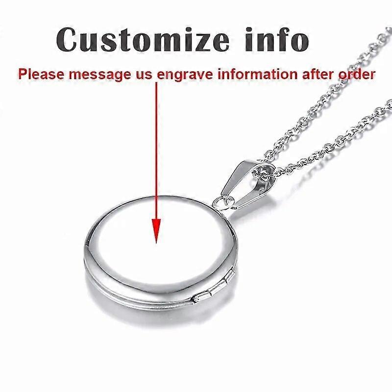 Personalize Round Locket Necklace for Women Stainless Steel Photo Frame Pendants Engraving Name Unique Valentine's Day Gift