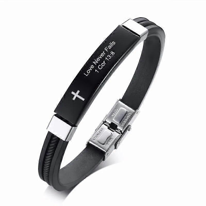 Cross Bible Verse Quotes Bracelets for Men Soft Silicone Bangle Comfort Wear Male Jesus Christ Faith Prayer Pulseira