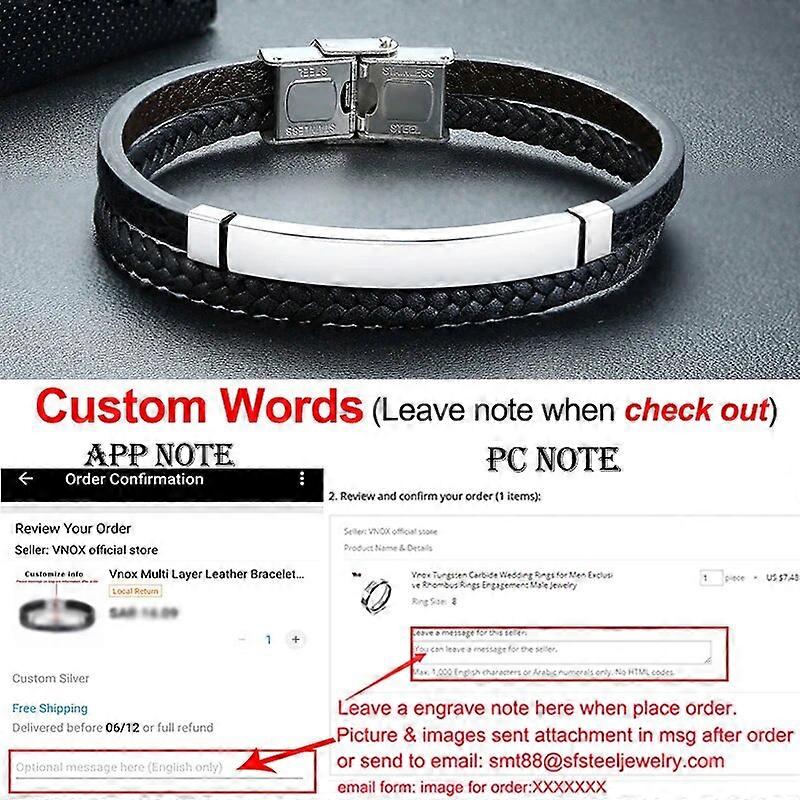 Personalize Braided Leather Bracelets for Men Customize Name Words Stainless Steel Casual Male Bangle