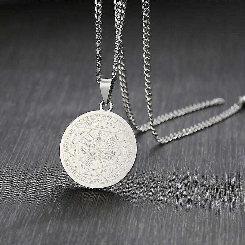 Mens The Seal of The Seven Archangels Necklace 3 Colors Stainless Steel Round Male Pendant Jewelry Free Chain 24"