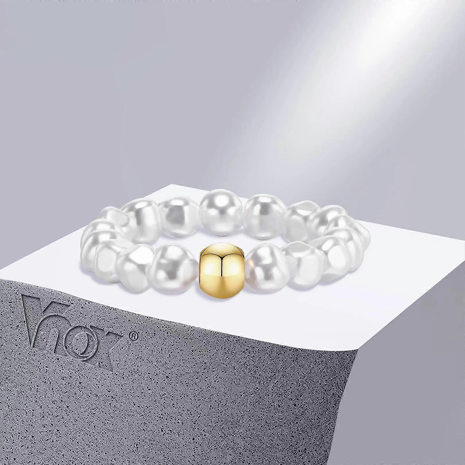 Glamour Party Rings for Women Mom Wife, Gold Color Stainless Steel Irregular White Simulated Pearl Beads Finger Jewelry
