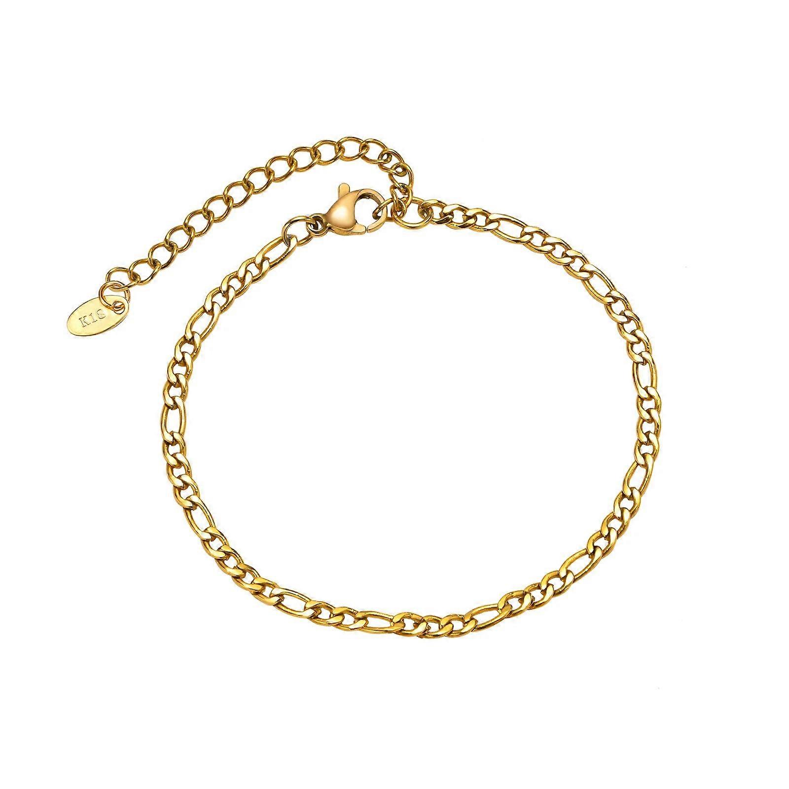 3/5mm Width Figaro Chain Bracelets for Women, Anti Allergy Stainless Steel Link Chain Wristband, Length Adjustable