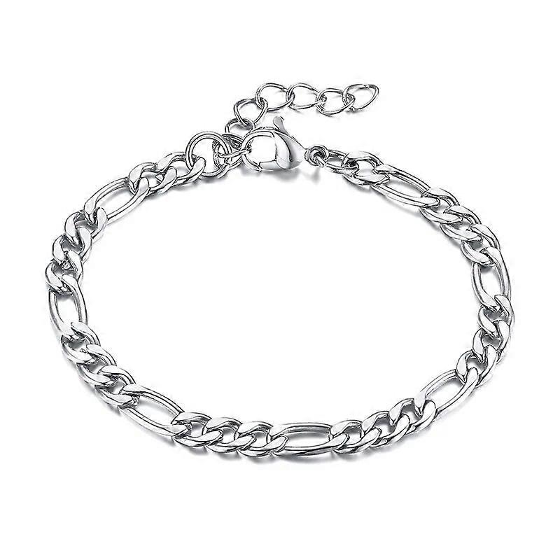 Figaro Chain Bracelet for Women,5mm Stainless Steel 3:1 NK Cuban Chain,Adjustable Length Wristband,Chic Basic Girl Jewelry