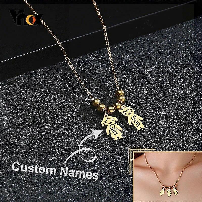 Free Customize Family Names Necklaces for Women Men Cute Girl Boy Figure Charm Pendants Sisters BFF Xmas Gifts Jewelry