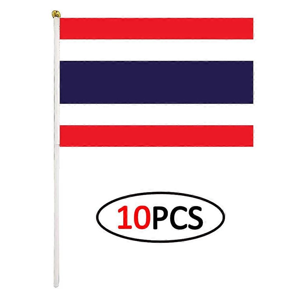 10Pcs/Set Thailand Handflag Banner Hand Held Plastic Pole The Thai National Mini Flag Celebration Ceremony Accessories