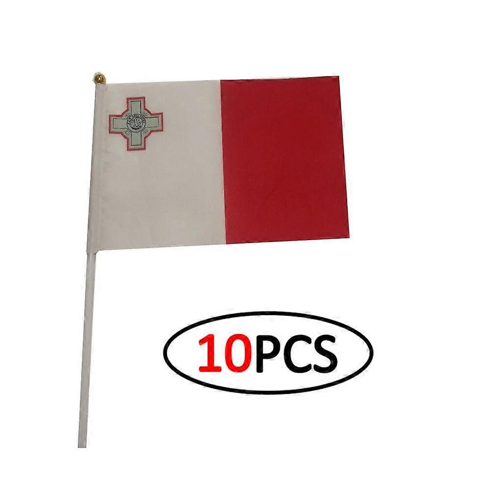 10Pcs/Set Malta Handflag Banner Hand Held Plastic Pole The Malta Mini Flag Celebration Ceremony Accessories