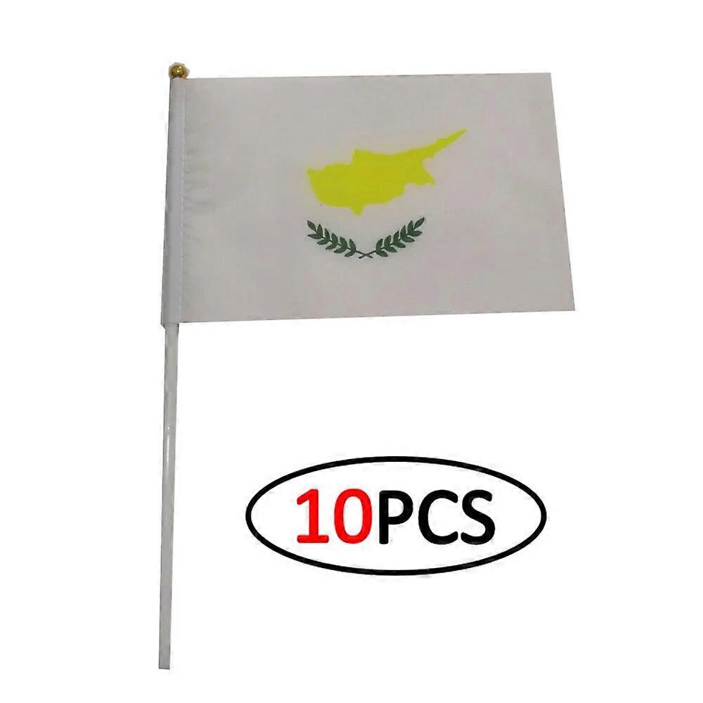 10Pcs/Set Cyprus Handflag Banner Hand Held Plastic Pole The Cyprus National Mini Flag Celebration Ceremony Accessories