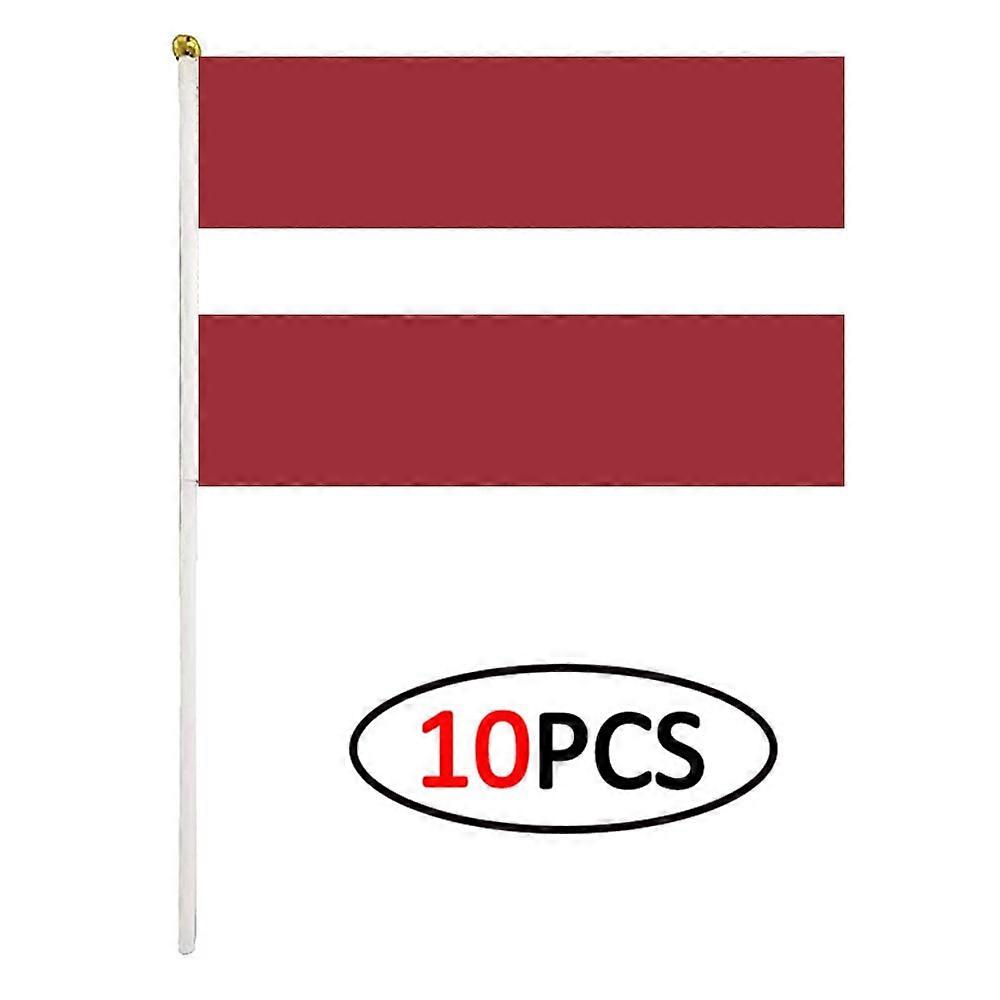 10Pcs/Set Latvijas Handflag Banner Hand Held Plastic Pole The Latvia National Mini Flag Celebration Ceremony Accessories