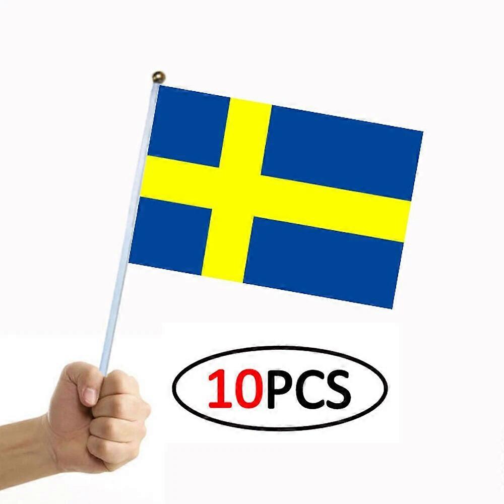 10Pcs/Set Sweden Handflag Banner Hand Held Plastic Pole The Swedish National Mini Flag Celebration Ceremony Accessories