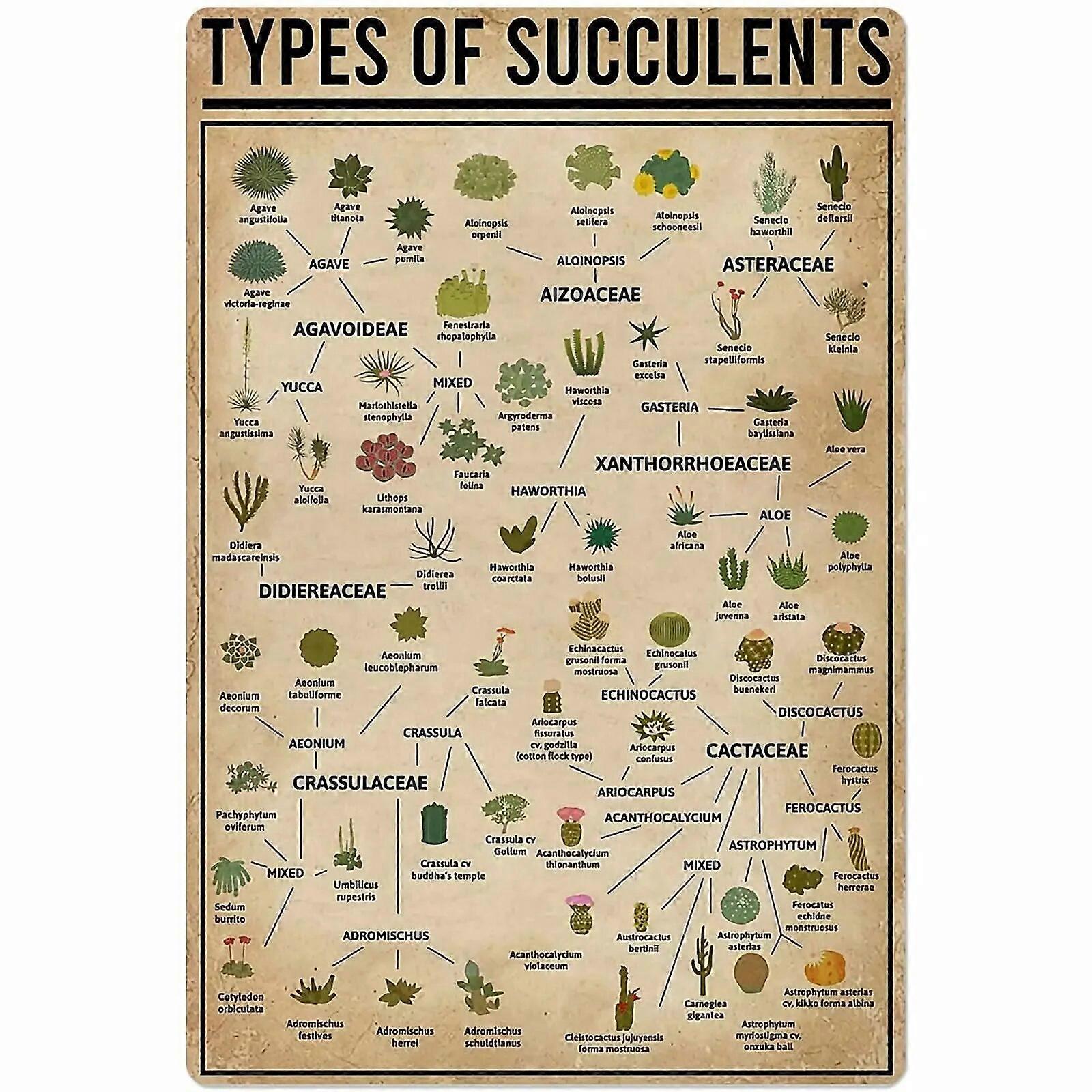 Jenis tanda logam sukulen poster pengetahuan tanaman dekorasi dinding dekorasi taman dekorasi rumah plak Retro pertanian 12x18 inci