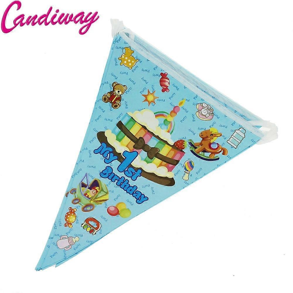 Baru Biru Kue Mainan Kertas Bendera Umbul Bendera Banner Pesta Ulang Tahun Dekorasi Bendera untuk Anak-anak Bayi Shower Hadiah Perlengkapan