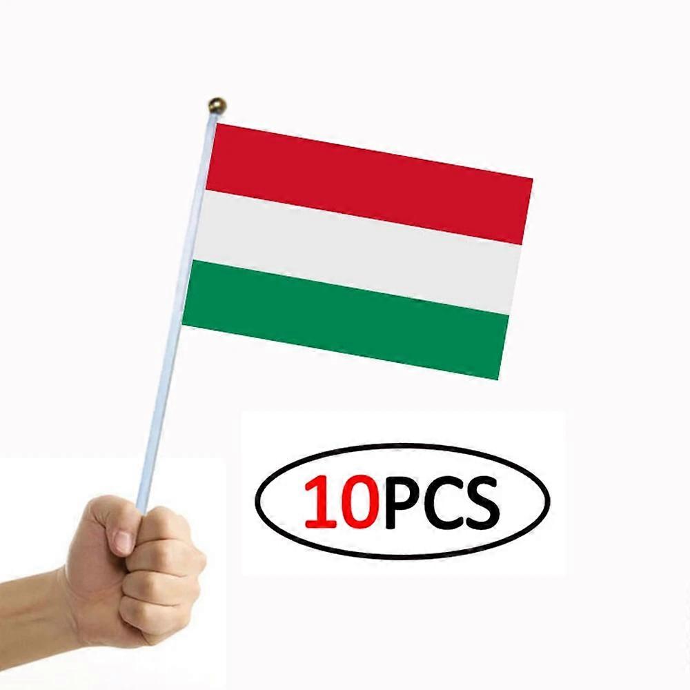 10Pcs/Set Hungary Handflag Banner Hand Held Plastic Pole The Hungary National Mini Flag Celebration Ceremony Accessories