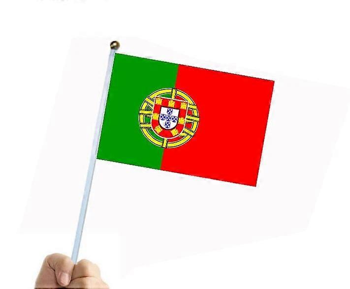 100pcs Portugal hand Flag 14*21cm Polyester Double Side Printing POR PORTU Portugal Hand Flag with plastic flagpole