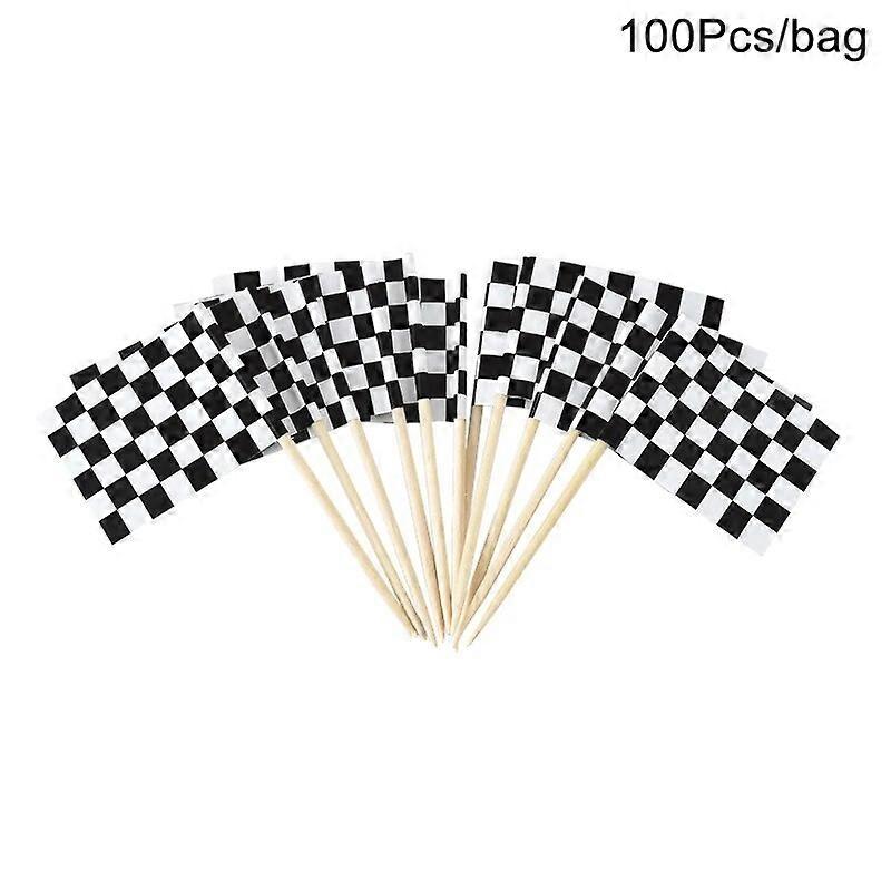 100Pack Racing Flag Food Fruit Picks Cupcake Topper Black White Checkered Flag Kids Racing Theme Birthday Party Cake Decoration