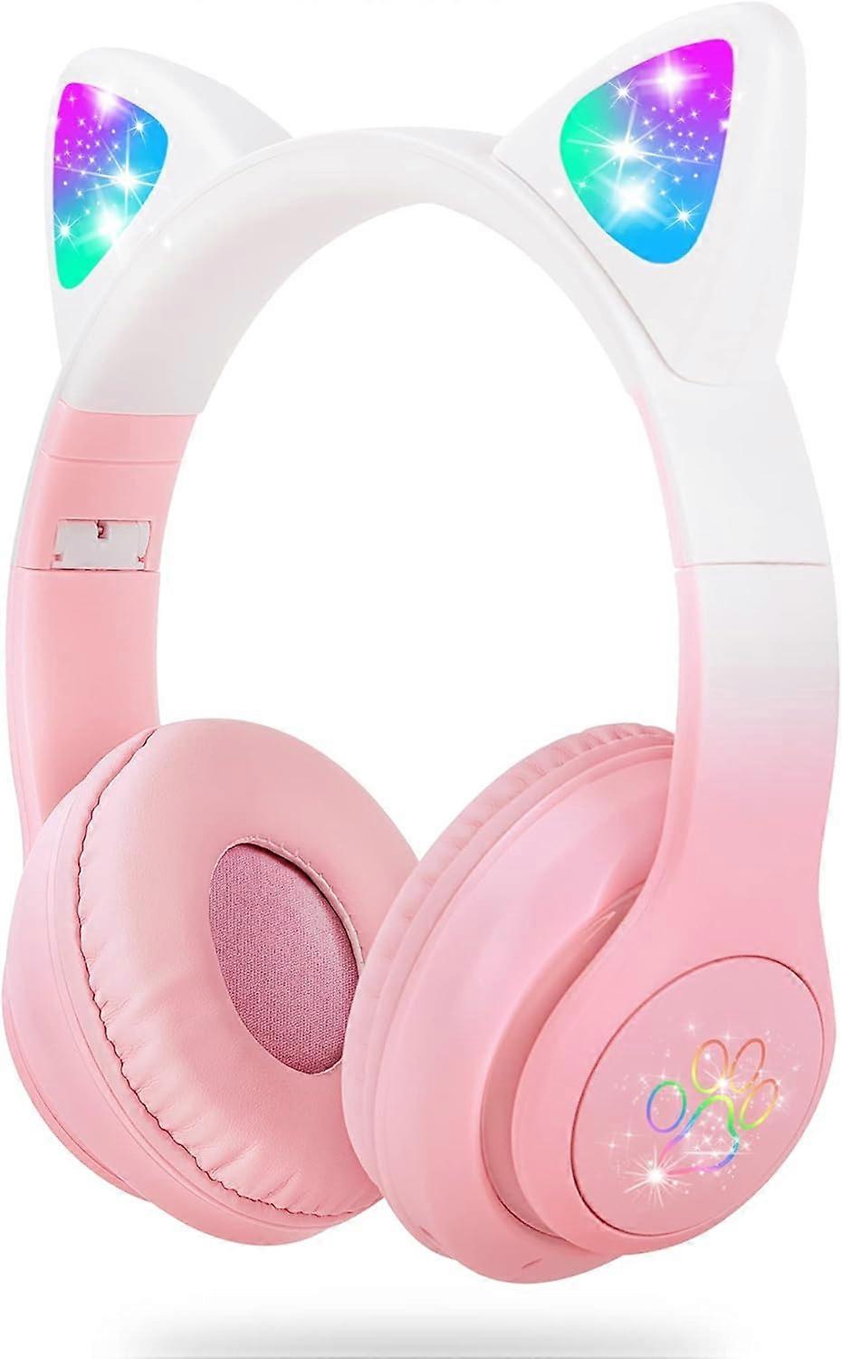 compatible SENCU Wireless Headphones Kids, Cat Ear LED Light Up Foldable Kids Bluetooth Headphone,HD Stereo Sound Childrens Headphones Built in Microp
