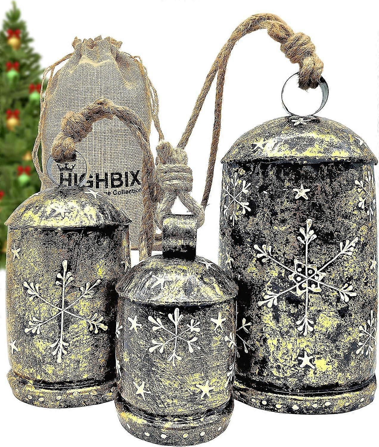 Newway Set of 3 Giant Harmony Cow Bells Huge Vintage Handmade Rustic Lucky Christmas Hanging XL Bells On