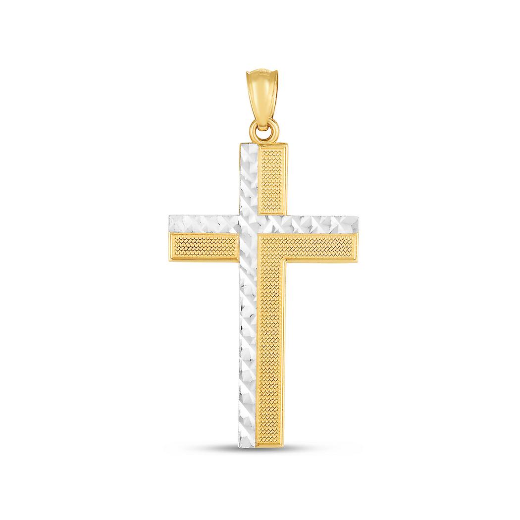 14k Gold Two-tone Sparkle-Cut Religious Faith Cross Pendant Necklace Pendant for Women - 2.3 Grams