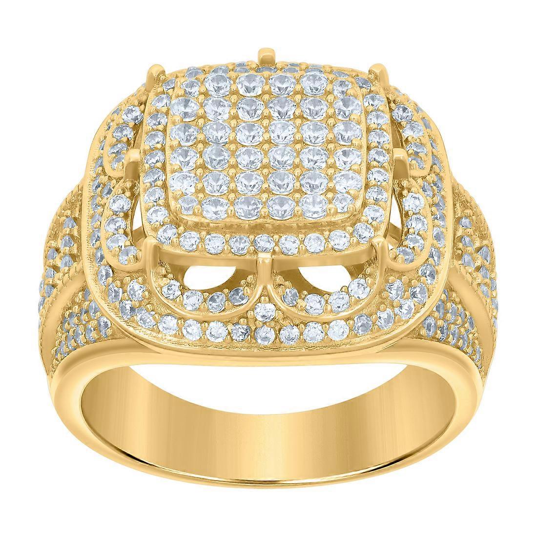 925 Sterling Silver Yellow-tone Mens Cubic Zirconia Fashion Ring 17.8x4.6mm Wide Ring for Men - Ring Size: 8 to 12