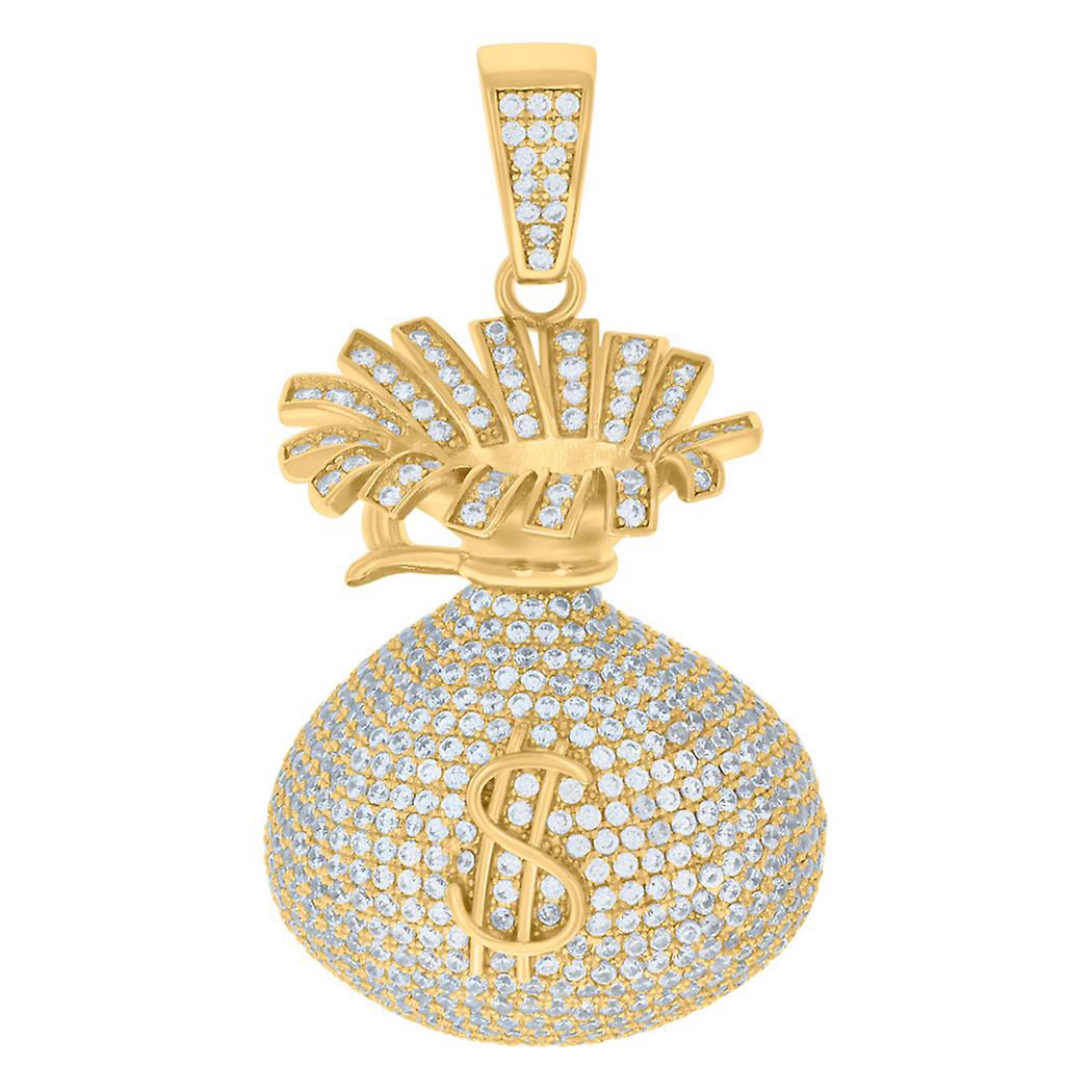 925 Sterling Silver Yellow-tone Mens Cubic-zirconia Money Bag Currency Fashion Charm Pendant - 15.6 Grams In Sterling Silver in Plated Metal - - This item does not include a chain - - [ Care and Handling: zircon ] - Avoid abrasives, rough handling and exposure to excessive light. Clean with warm soapy water and a soft cloth. -