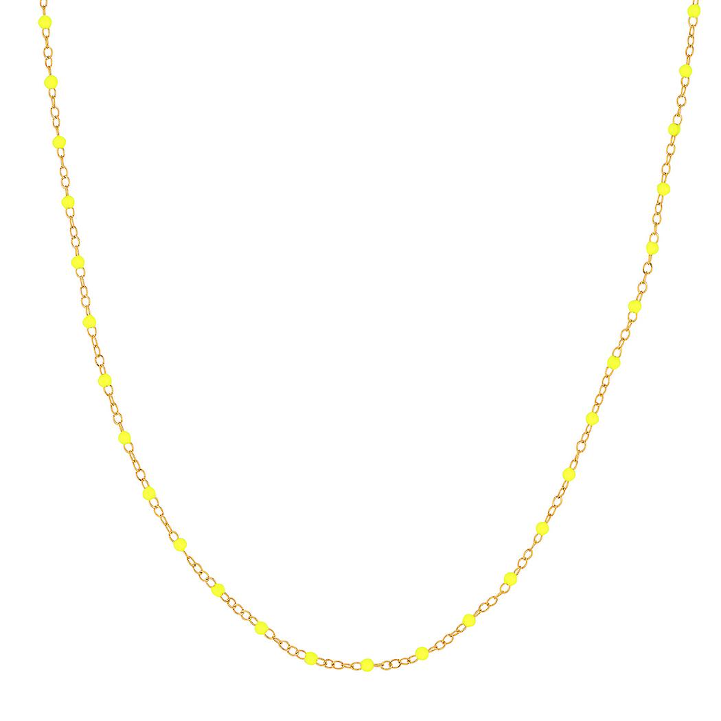 14k Yellow Gold Neon Yellow Enamel Bead Chain Bracelet Adjustable With One Inch Extension 7.50 Inch Link Bracelet for Wo