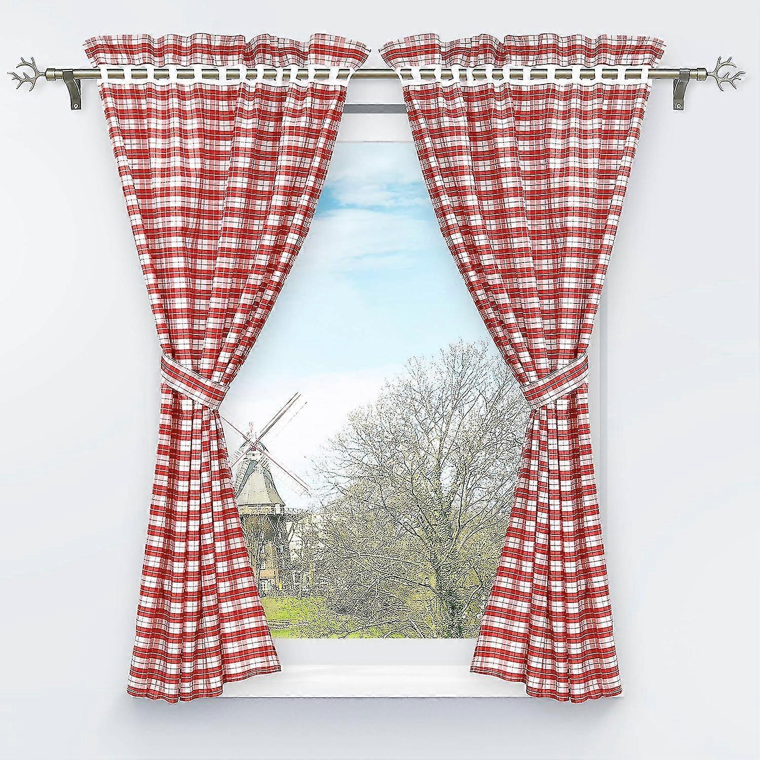 Packaging: It includes two curtains and two ties. The height of the curtain is 120 cm. The width is 80cm. Quality: 100% polyester, soft and comfortable. Features: The biggest feature of this curtain is the cute plaid pattern, which can show classic charm. The combination of two clips makes it possible to store the curtains at any time. The ring is very practical for carrying the curtains. Inhabitants: This curtain shows us a rustic look. Red and blue are suitable for many rooms. Bedrooms, kitchens and living rooms look more natural with embellishments.
