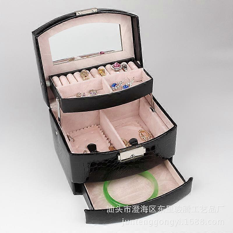 Mirrored 3-layer Jewelry Box Earrings Rings Necklace Storage Case Premium PU Leather Display Women Girls Gift