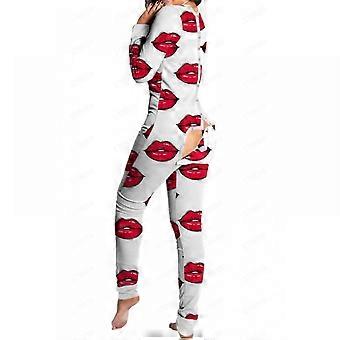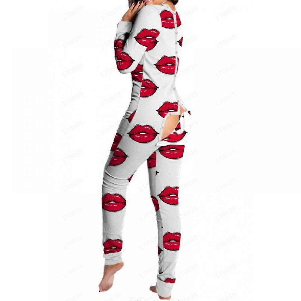 Women's White Red Lips Kiss One-piece Jumpsuit Pajamas With Open Back ConvenientJumpsuits & Rompers Newway