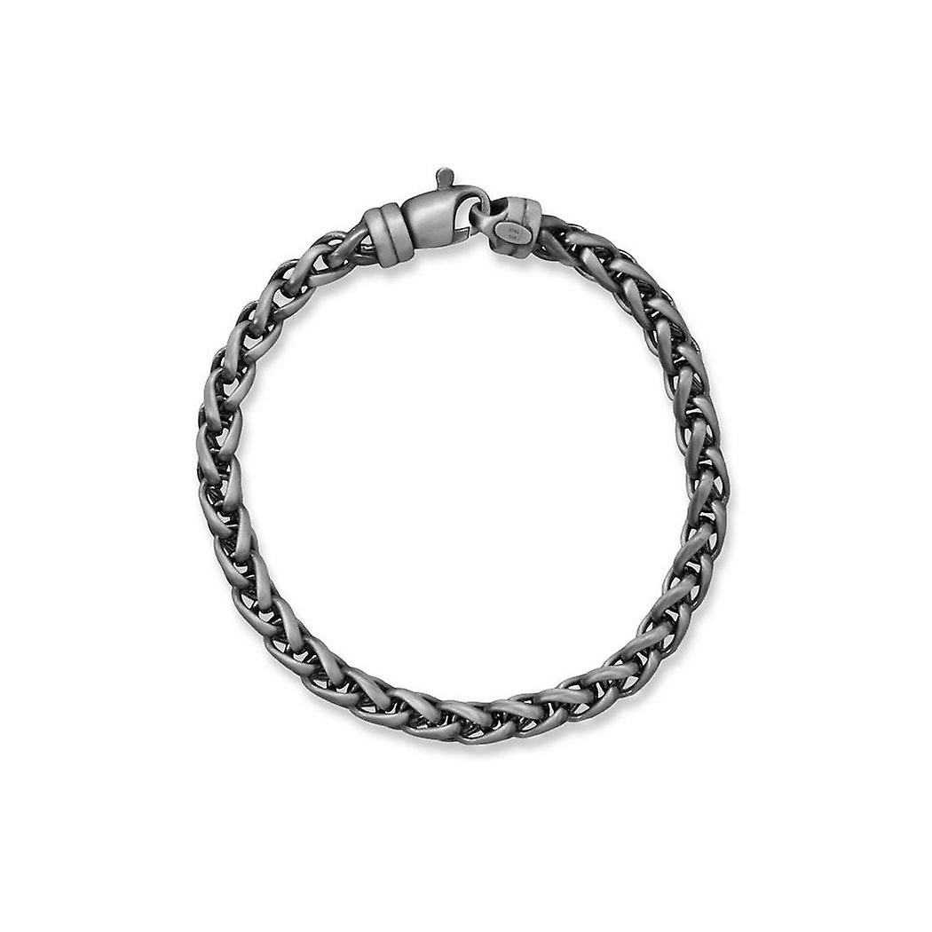 925 Sterling Silver 8 Black-Rhodium Brushed Wheat Chain Bracelet 8 Inch is 6mm Wide Finished Link Bracelet for Women and