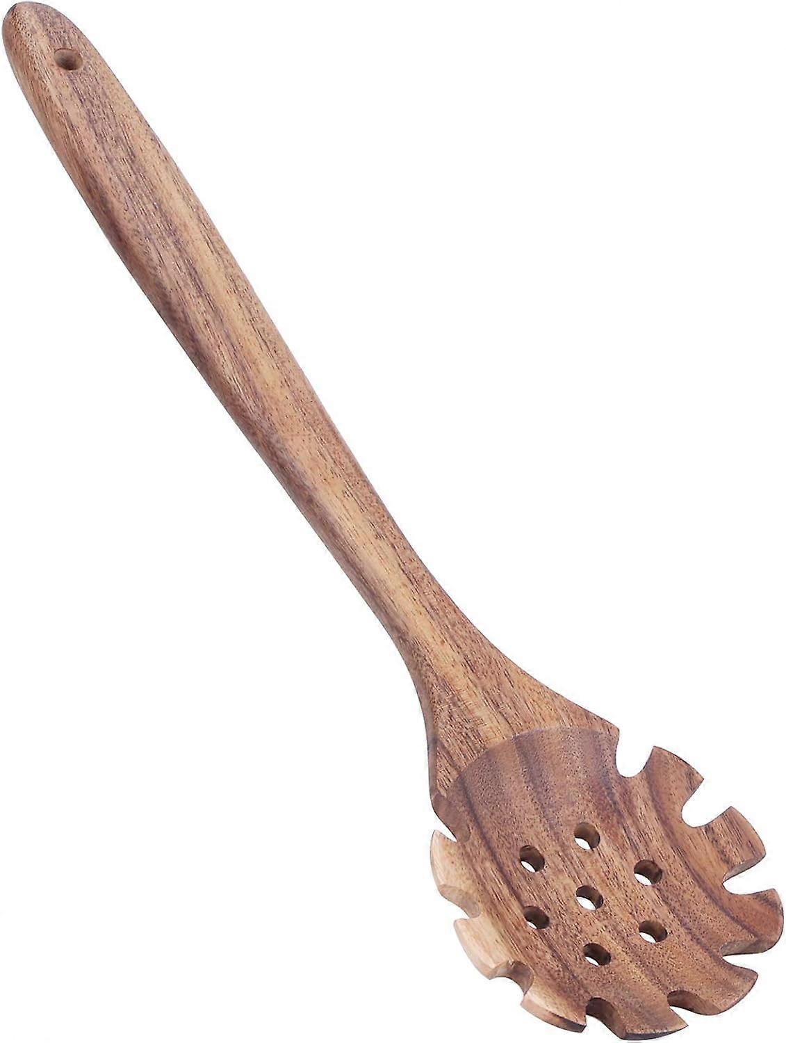 Teak Cooking Spoon, 13 Inch Wooden Spaghetti Spoon,Pasta Serving Spoon with Hollow Design for Cooking Kitchen, Easy to Use