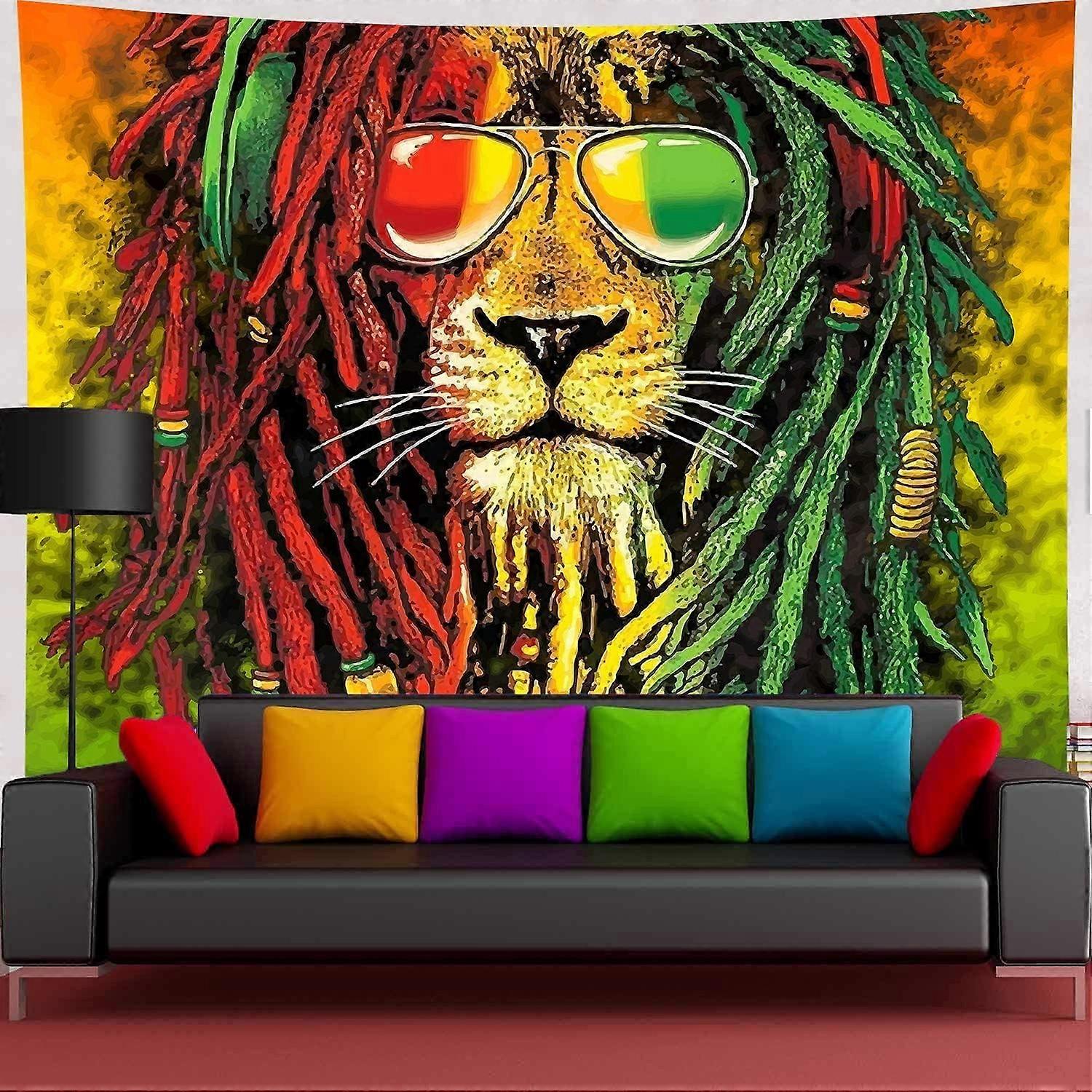 Rasta Tapestry Lion Head Bob Tapestry Wall Hanging Backdrop for Living Room Bedroom Dorm Psychedelic Decor Tapestry 150x130cm