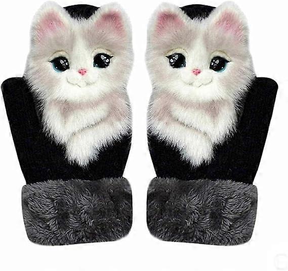 Hand-knitted Animal Mittens, Cute Animal Knitted Gloves Full Fingers Thickening Soft Winter Warm Mittens Women Girls