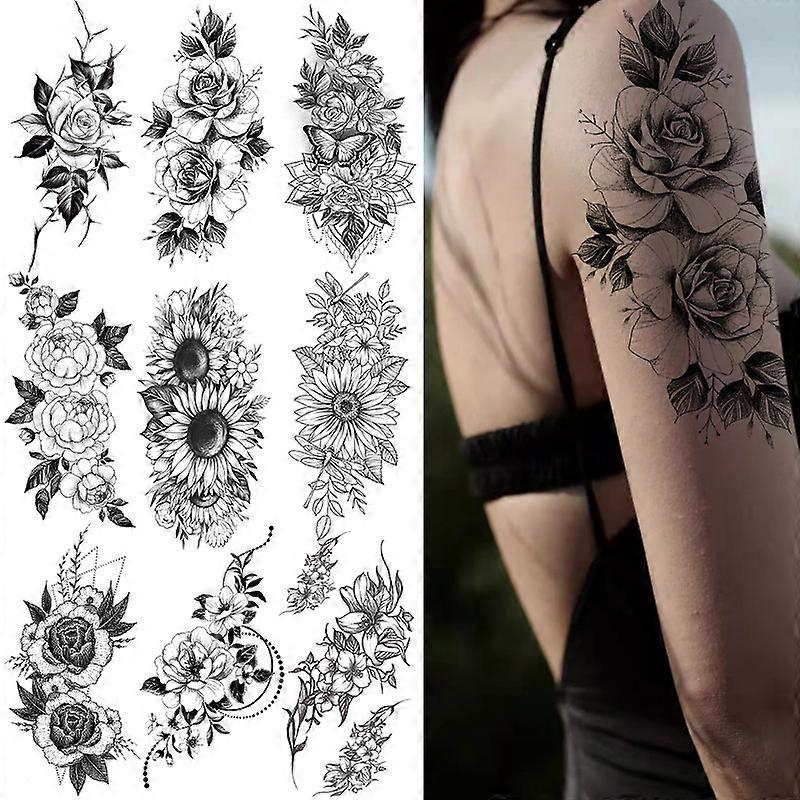 20 Sheets Large Realistic Flower Temporary Tattoo Adults Women Waterproof Black Tattoo,random