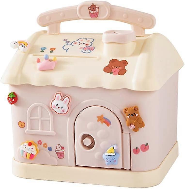 Children's piggy bank, large capacity piggy bank, small house piggy bank, pink