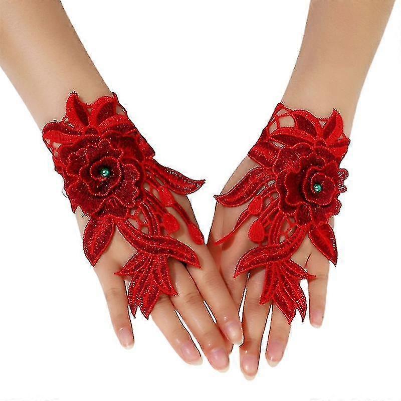 Embroidered Floral Fingerless Gloves | Lace Wristband with Hollow Design