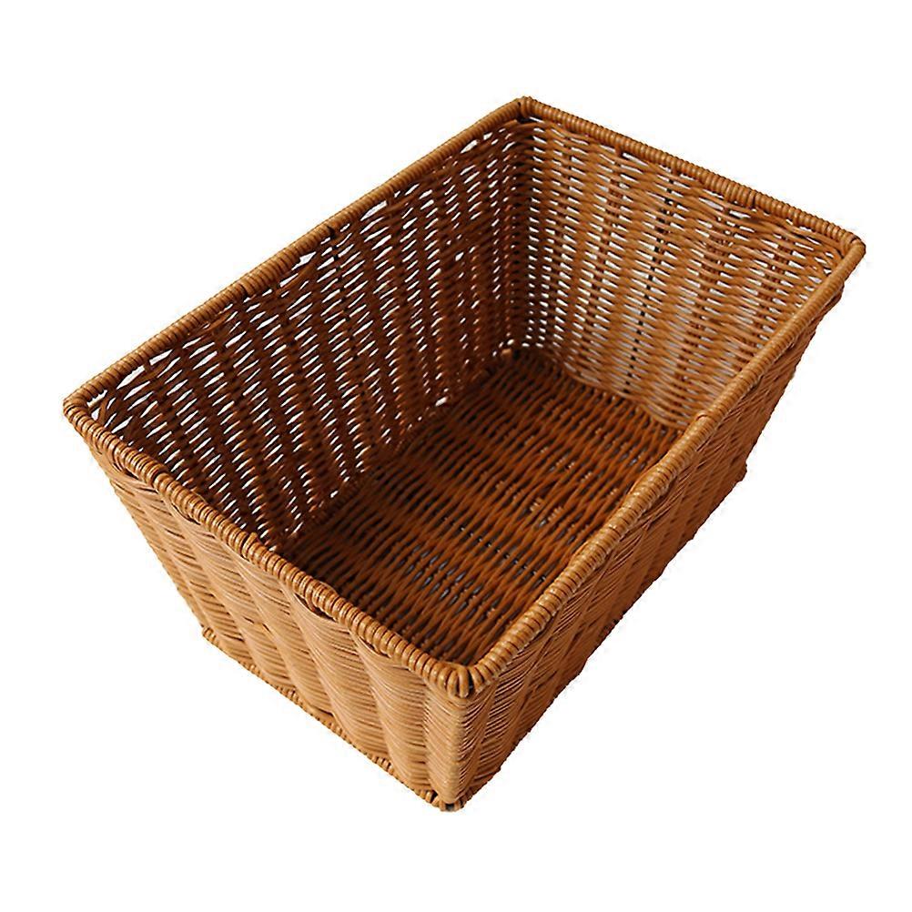 Light Brown Rattan Plastic Basket for Kitchen Use Simple Design Woven Fruit and Vegetable Storage 12.5 x 9.5 x 5.5 Inches