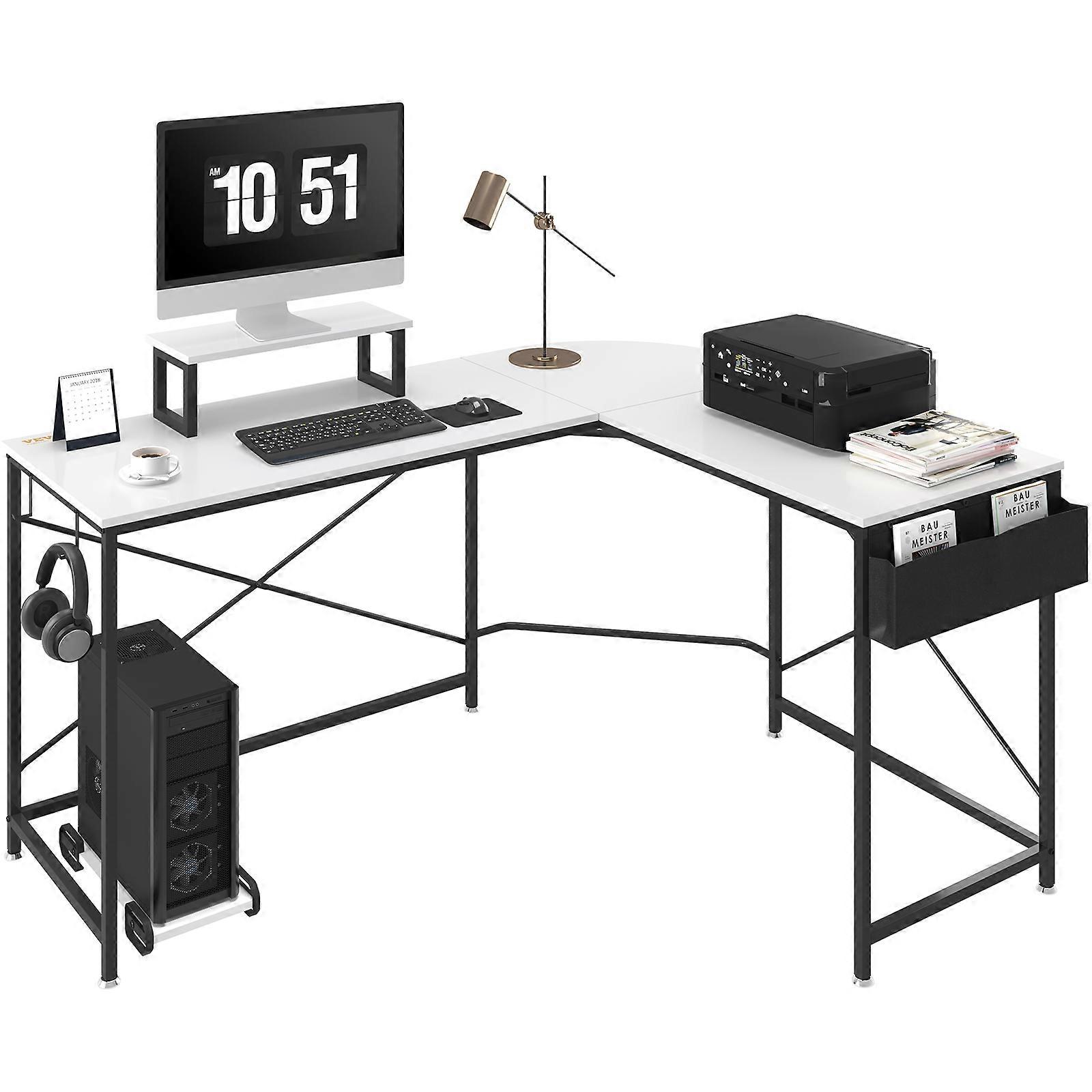 L Shaped Computer Desk, 59'' Corner Desk with Storage Bag, Monitor Riser and CPU Stand, Work Desk