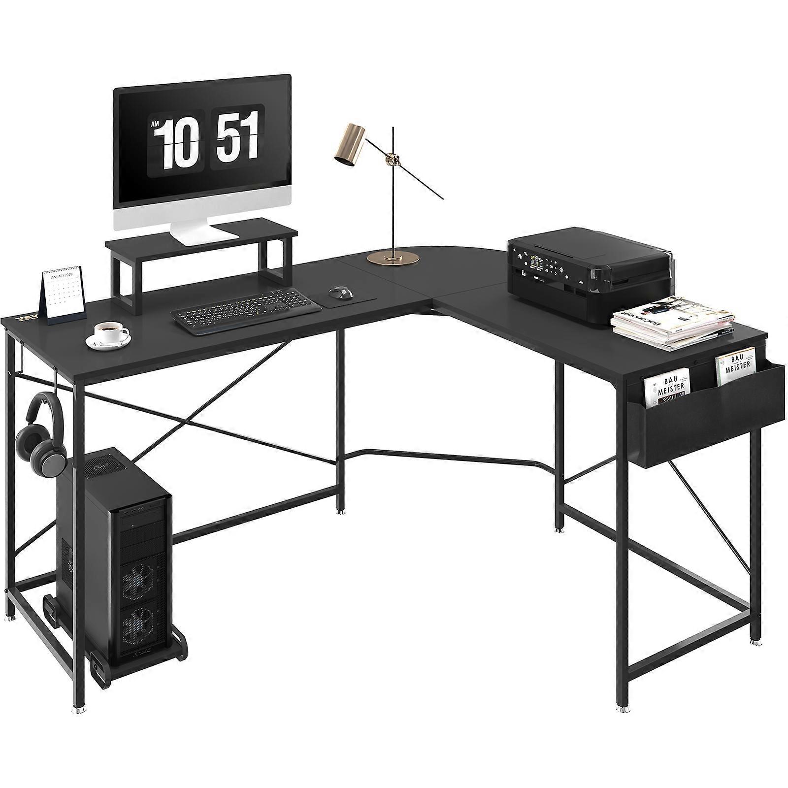 L Shaped Computer Desk, 59'' Corner with Storage Bag, Monitor Riser and CPU Stand, Work Desk Gaming Desk