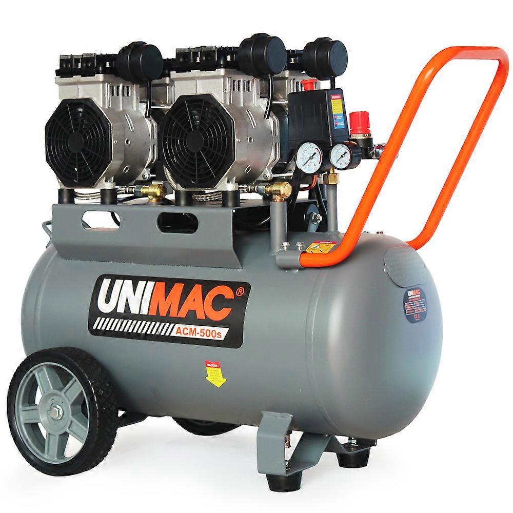 HOD HEALTH AND HOME Australia has been operating online and instore for 8 years. All products come with a 1 year warranty, fast shipping and special offers added to our site daily.. Features Trade quality 4-cylinder unit for performance and reliability Dual twin-cylinder motors for maximum efficiency Ultra-quiet operation at only 64 dBA Class-leading power with a total output of 3.0 HP Large 50L tank delivering continuous air supply of 200 L/min Service-free design no maintenance required Two quick-connect Nitto outlets for versatile tool usage Easy-to-read pressure gauges for user convenience design with large wheels and extended handle for easy movement Specifications Model: Acm-500S Quiet Air Series Free Air delivery: 200L/Min (7.0 Cfm) Receiver Capacity: 50L Working Pressure: 116Psi Restart Pressure: 86Psi Starting Method: Automatic Pressure Control Switch Power Rating: 2.2Kw (2 X 1.1Kw) 3.0 Hp Main Voltage Input: 230-240V 50Hz ID Rating: Ip20 Please Note: This product requires minimal assembly. The buyer is responsible for checking and adjusting valves/fittings to prevent air leaks before installation and operation. You Will Receive X1 Unimac Acm500s Air Compressor