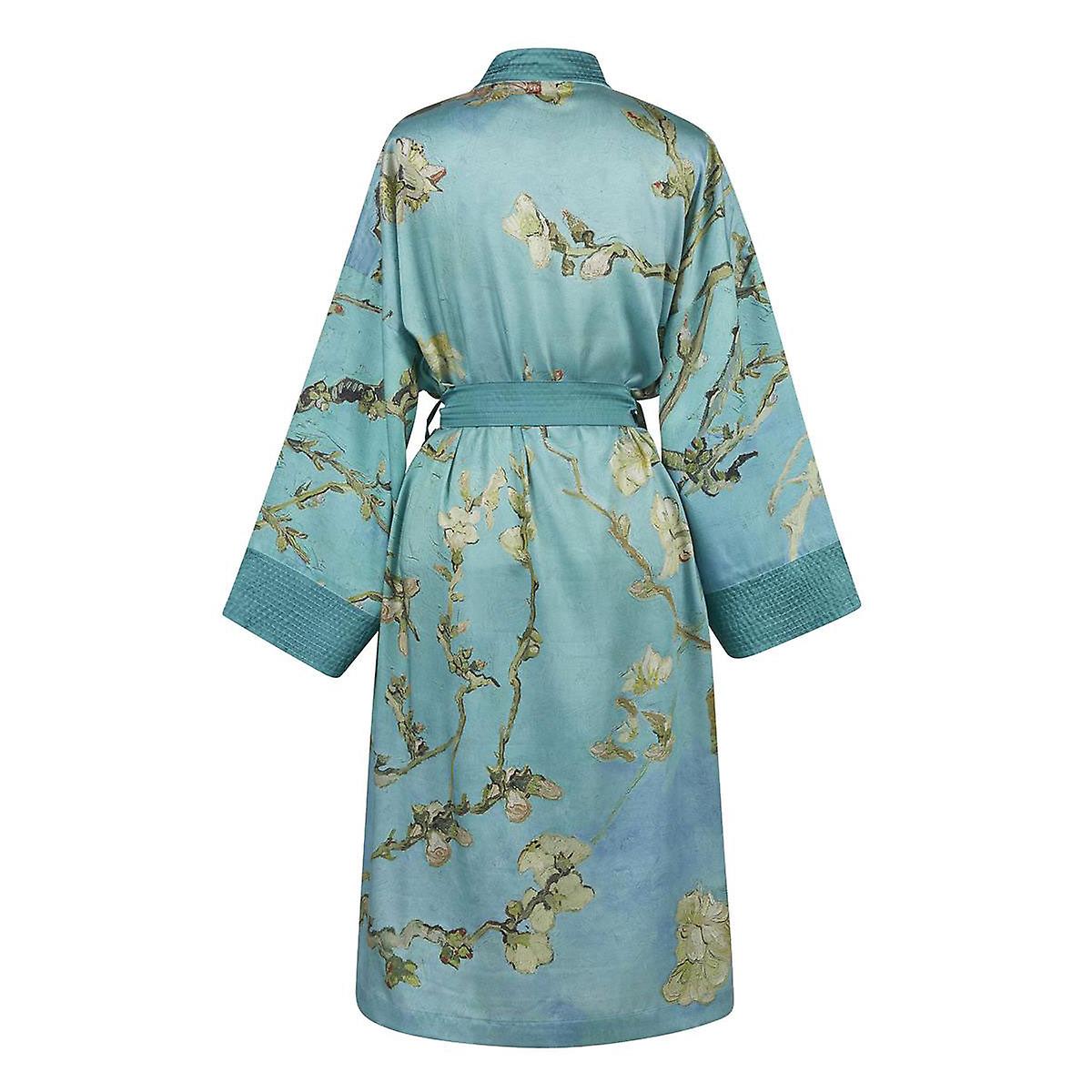 The Van Gogh Almond Blossom Blue Kimono Bath Robe By House Is Based On The Painting Almond Blossoms By Vincent Van Gogh In Green Blue Natural Brown And Black Colour Tones. The Kimono Features The Blossom Branches On A Turquoise-Blue Background With Natural Shades Of Green And White. Vincent Painted One Of His Favourite Subjects - Large Flowering Branches Set Against A Blue Sky - As A Gift To Celebrate The Birth Of His Godson Who Was Named After Him: Vincent Willem. As A Symbol Of Young Life Vincent Chose The Branches Of The Almond Tree One Of The Earliest Flowering Trees - As Early As February - That Announce Spring. The Subject The Sharp Outlines And The Placement Of The Tree In The Painting Is Evidence Of The Inspiration Van Gogh Found In Japanese Woodblock Prints.