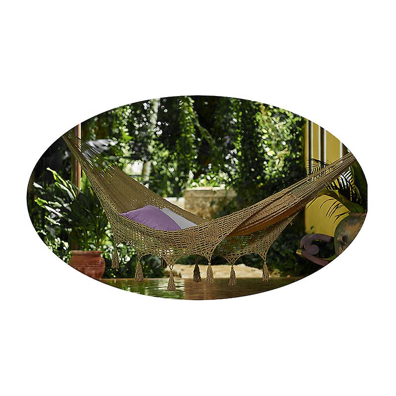 This Gorgeous Generous-Sized Hammock Will Quickly Turn Into Your New Favorite Afternoon Spot. Mayan Legacy Artists Hand-Weave It From 100% Cotton Rope In Elegant Colours And Add A Beautiful Crocheted Fringe With Tassels And Floral Designs For A Glamorous Finish. Just Add A Pair Of Straps Or A Frame And Enjoy.