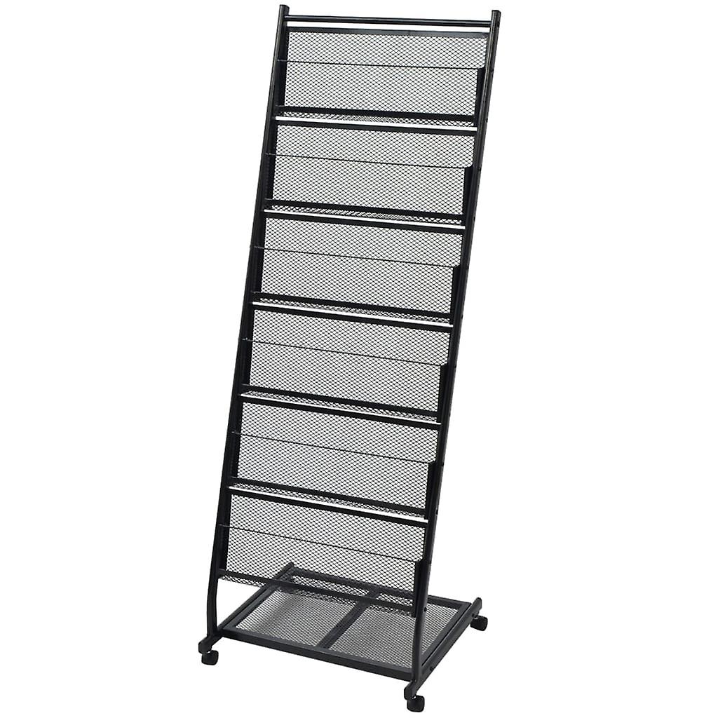 Colour: Black Material: Steel Dimensions: 47.5 X 43 X 133 Cm (L X W X H) With 6 Shelves For Displaying A4 Magazines Or Brochures Side By Side With 4 Castor Wheels Two Of Which Have Brakes Easy To Move Assembly Is Easy