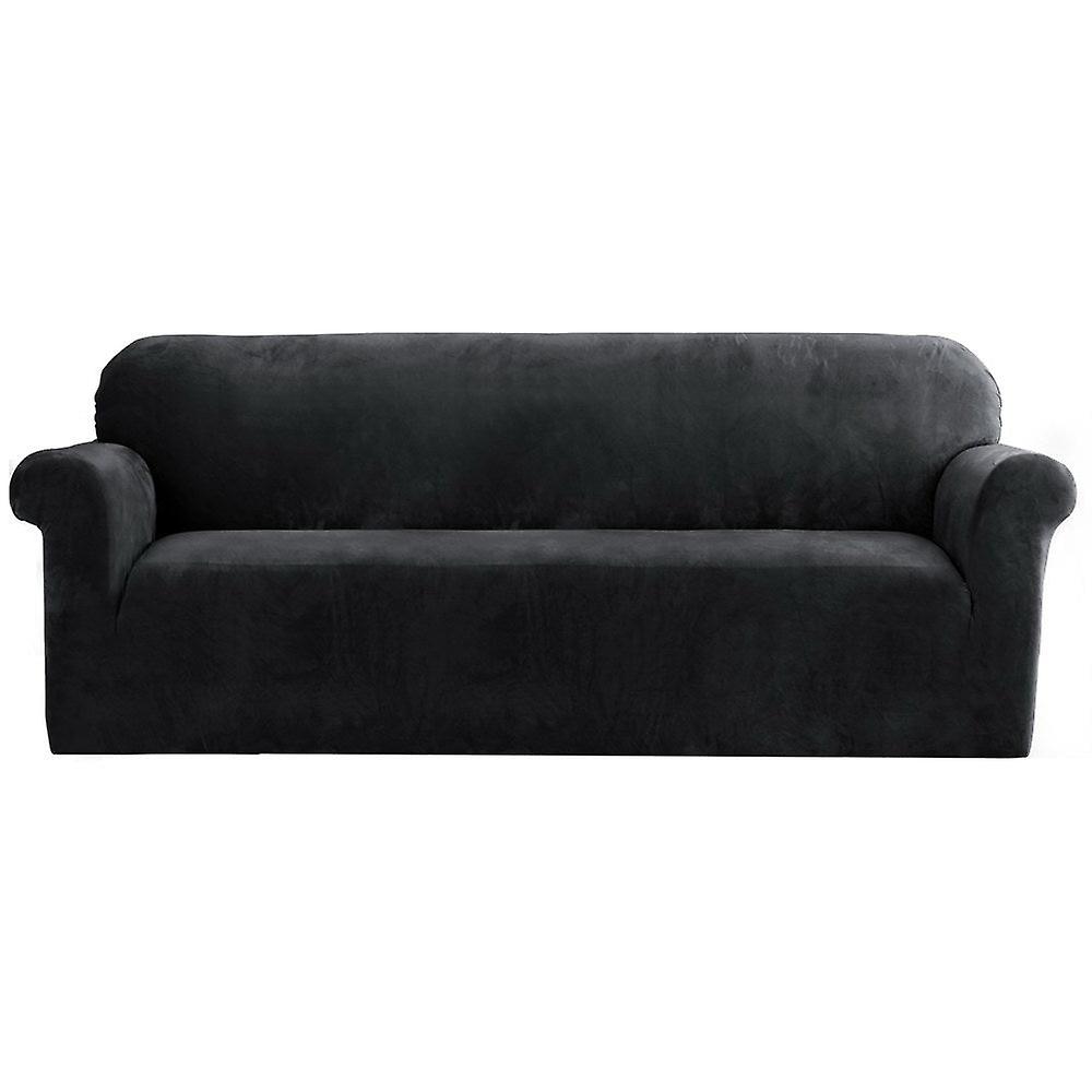 Artiss Velvet Sofa Cover Plush Couch Lounge Slipcover 4 Seater Black Slipcovers