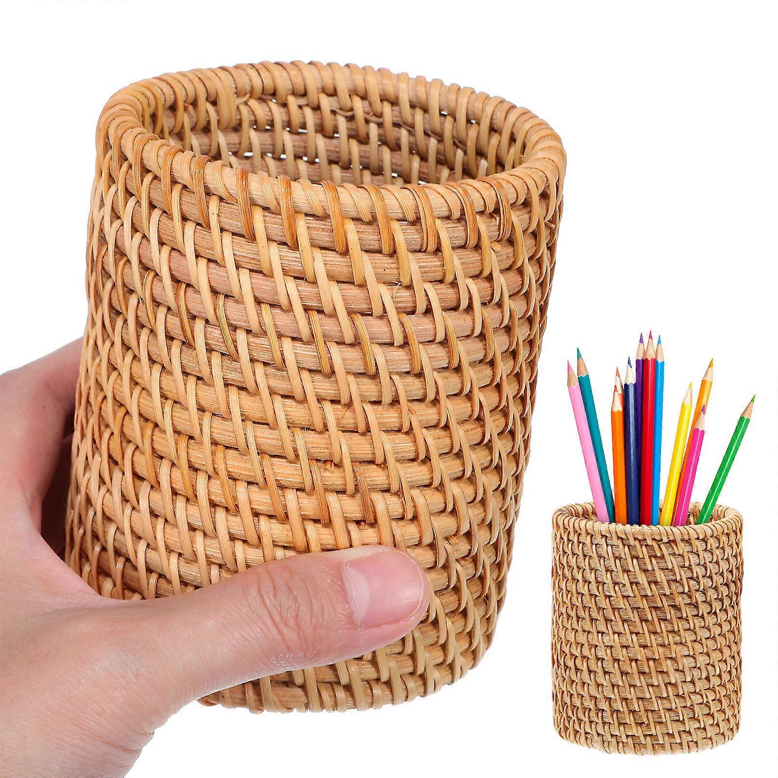 Diyeah Woven Pen Holder 2pcs Handmade Wicker Pen Holder Boho Rattan Pencil Holder Makeup Brush Holder Desk Organizer Toothbrush Storage Container For