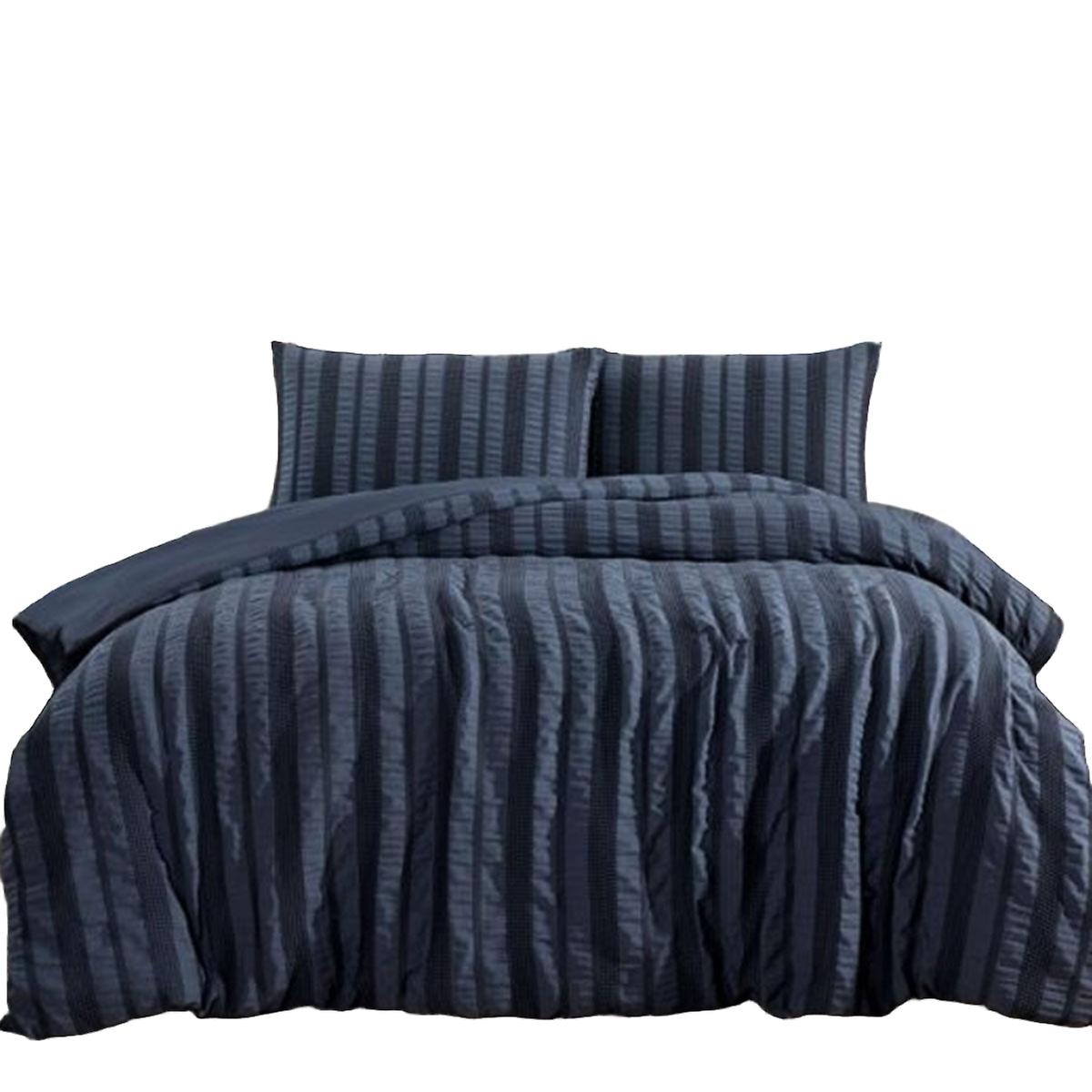 This Seersucker Quilt Cover Set Lisbon Indigo by Ardor is an easy way to give your bedroom a a classic textural update. Lisbon's textural detail of seersucker paired with a waffle weave creates a detailed linear pattern on the front of this quilt cover set hinting notes of elegance with a lovely shade of indigo blue with a plain dyed reverse. Lisbon is a necessary staple to your bedroom decor. It is made from quality and soft touch Polyester fabric for that perfect relaxation you need.