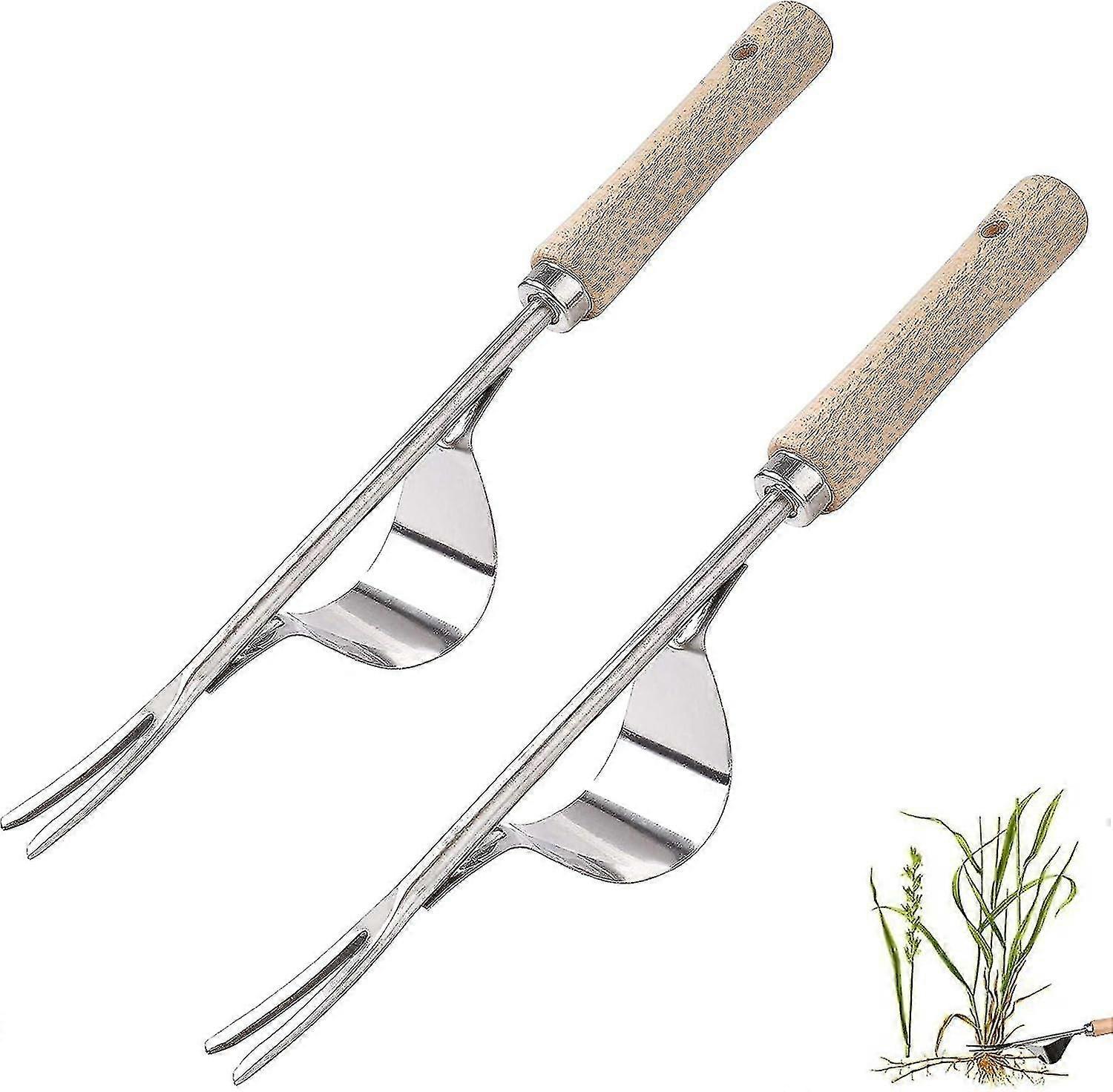 Product Material: Stainless steel / Wood Size: 32 * 1.5 * 44cm Quantity: 2 pcs Package Include: 2 * Stainless Steel Weed Killers 1. High Quality Material: The weed killer tooth split point is made of high quality stainless steel which is rustproof and beautifully polished, extremely sturdy and sharp. Designed with a wooden handle that keeps your hands comfortable while gardening. 2. Convenient Weed Killer Tool: This manual weed killer is nice in that it has a curved head that gives you more power and in the middle which makes it easier to tip the root. Ideal for prying and removing thistles, dandelions, crabgrass, chickweed and other common garden weeds. 3. Ergonomic handle: The wooden handle is smooth and burr-free, comfortable handle and ergonomic design. It is light but sturdy, which makes gardening work smooth and simple. Very ergonomic for better hand comfort and less strain for longer jobs. 4. Easy to Use: The curved lever base and sturdy V-fork tip design make the manual weed burner easy to use. Just rest the curved metal base on the ground and dig around the roots to pull and remove weeds. Use the sharp fork point to dig and lift the roots, stem and leaves. 5. Great Gardening Gift: Weeding can be a very frustrating experience. With this indoor and outdoor garden tool, the job is easier than what you have experienced in the past, it is a perfect gift for male and female gardeners or kids and children who always want to lend a helping hand in the garden.