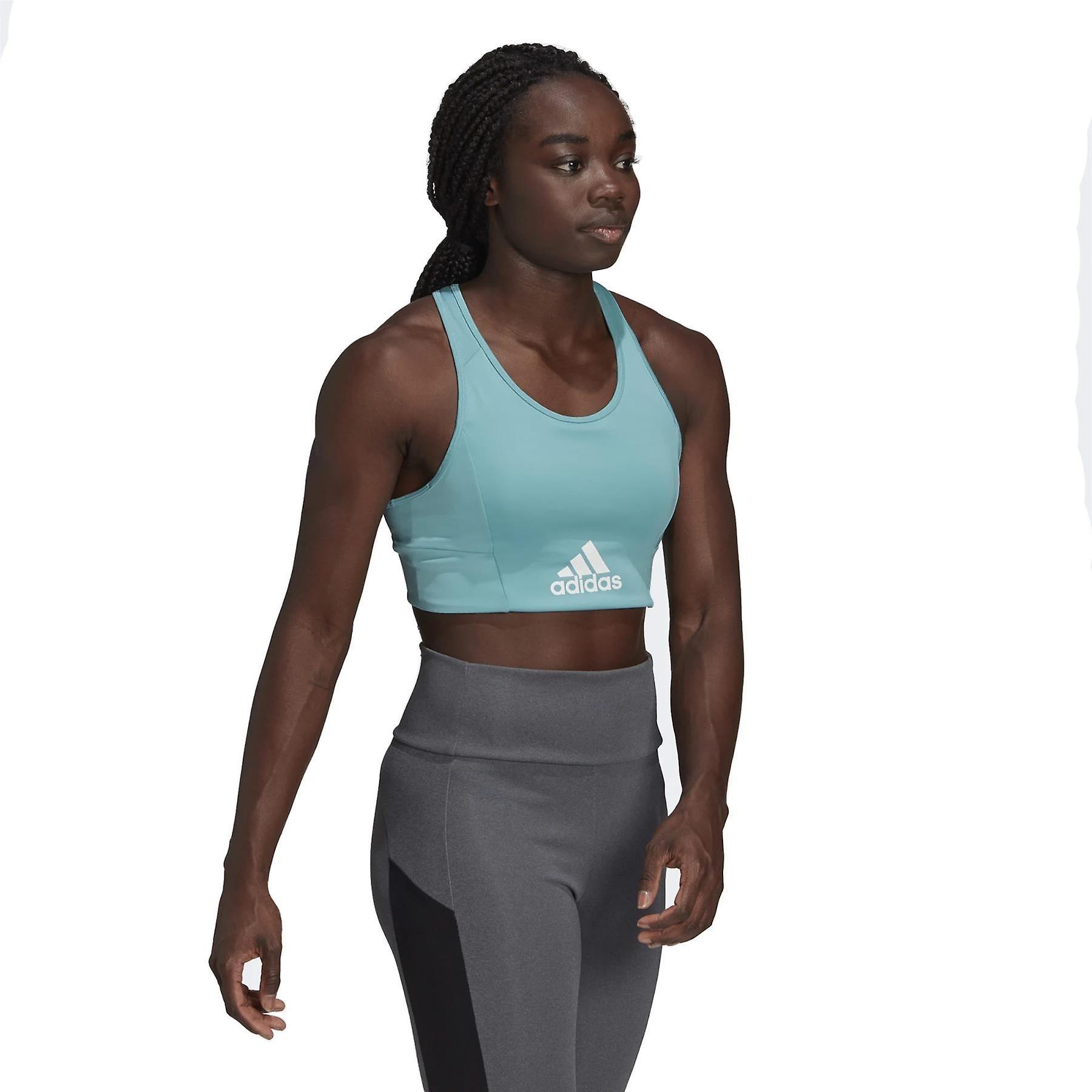 Adidas Aeroready Designed 2 Move Logo Padded Sports Bra Top - Mint - Womens