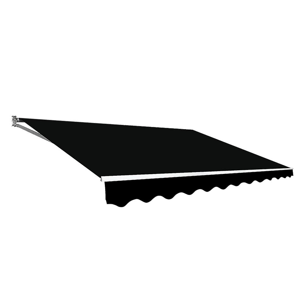 Frame: Powder-Coated Aluminium Shade: 100% Polyester 300-Gsm Fabric Fabric Weight: 280G/M2 Accessories: Owner's Manual Wall Brackets And Hand Crank Colour: Black Dimensions: 3.0 M X 2.5 M Usage: Patios Gardens Over Doors And Windows Or On Balconies Ease Of Use: Easy
