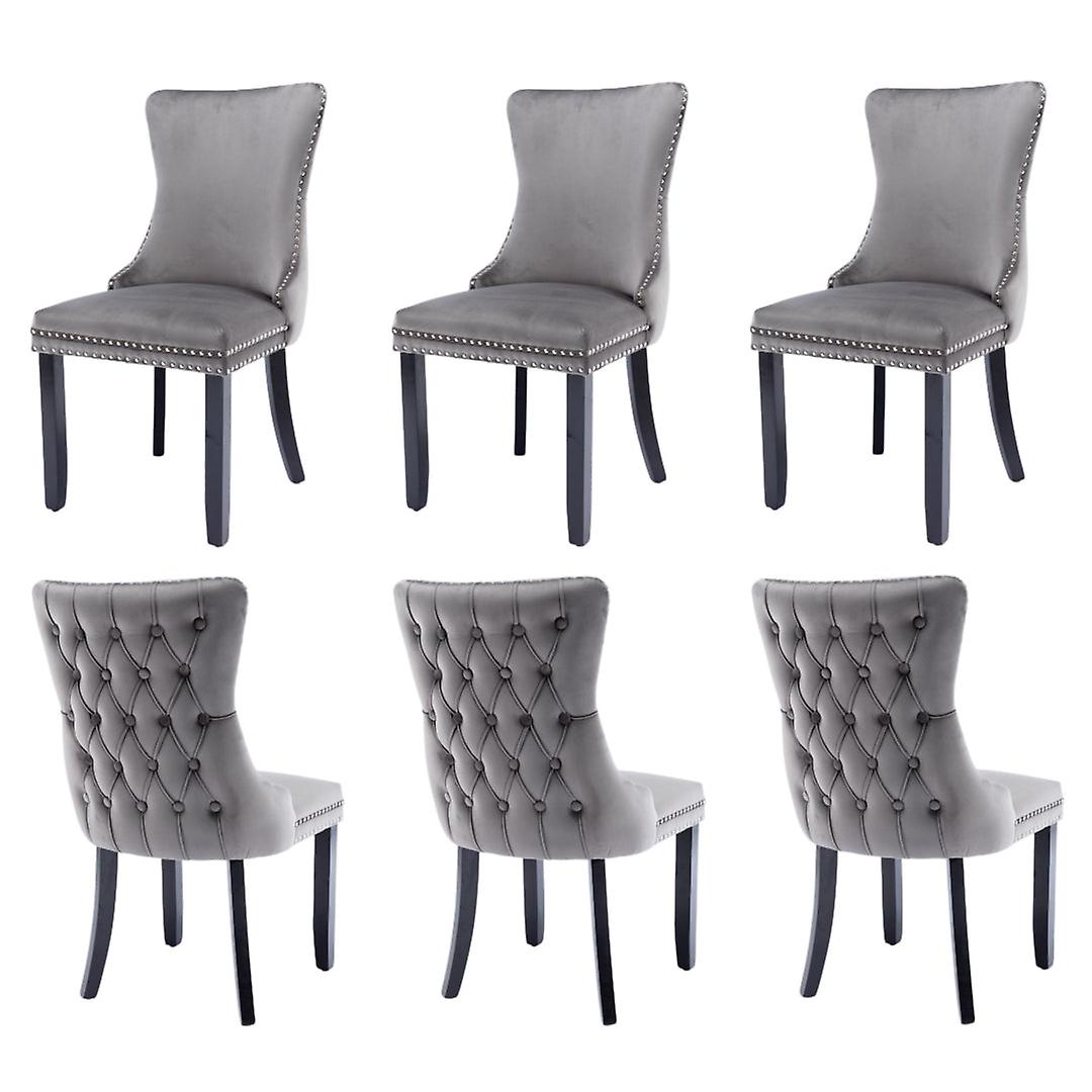 6X Velvet Upholstered Tufted Wingback Side With Studs Trim Solid Wood Legs For Kitchen Dining Chairs