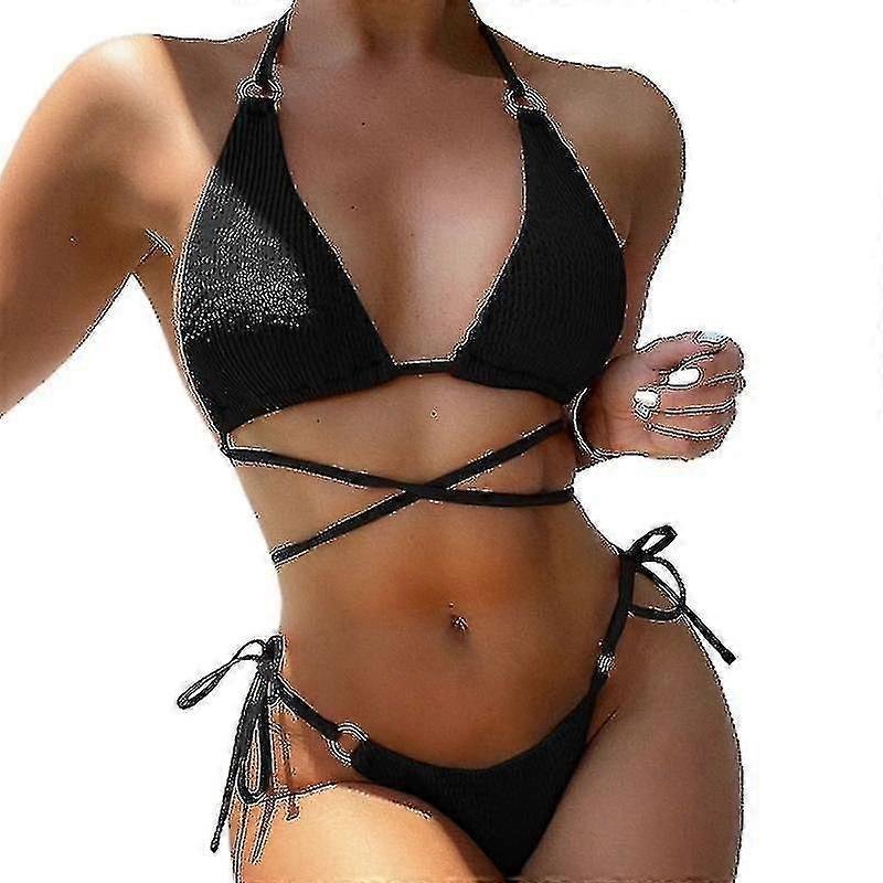 Solid Color Bikini Set, Sexy Slim Swimwear with Small Chest Cover, Gathered Wrap Bathing Suit for Beach, Pool